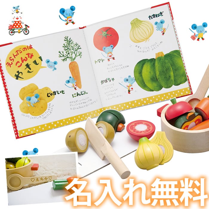 サイズ絵本:W18.5×H18.5 商品本体(最小のブロック)W3.5×D3.5×H2.5セット内容絵本・かぼちゃ・じゃがいも・たまねぎ・にんじん・トマト・おたま・包丁・まな板・おなべ各1対象年齢3歳頃〜お名入れ画像で記した位置へお名前をお入れします。 ひらがな、カタカナ、アルファベット、漢字、マークが対応可能です。 ※星とハートは塗りつぶし不可です。 ※お名前の指示は備考欄へご入力ください。 ※お名前の文字数により、位置やサイズが若干異なる場合がございます。 ※文字数が多い場合は文字サイズは小さくなります。 ※木製のおもちゃですので、お名入れ部分には木目が出ますこと、あらかじめご了承くださいませ。 ※木肌の元々の色により、濃淡が生じる場合がございます。 ※文字数・内容によってはお受けできない場合がございます。納期1〜2営業日での発送となります。(※同梱商品がある場合はこの限りではありません)(※数量が多い場合はこの限りではありません。)(※前入金決済をお選びの場合はご入金確認後から数えて1〜2営業日での発送予定となります。)(※ご注文内容に確認事項のある場合はこの限りではありません。)(※写真入りカードをお選びいただいた場合はお写真の送付をお待ちするため、この限りではありません。)重要事項お客様からのご注文に応じてオーダーメイドでお名前をお入れする関係上、注文内容のご変更やキャンセルにつきましては、弊店からの受注確認メールの送信をもって締切とさせていただきます。それ以降のご変更やキャンセルは一切お受けできません。あらかじめご了承の上、ご注文くださいませ。素材絵本・まな板:紙かぼちゃ・じゃがいも・たまねぎ・にんじん・トマト:天然木・ナイロンおたま・包丁・おなべ:天然木箱サイズ24×24×6cm(予告なく変更となる場合があります)生産国中国(予告なく変更となる場合があります)のし・ラッピングおのし、ラッピング共に無料サービスです。包装紙でラッピングいたします。※包装紙不要、もしくはご自宅用のご指示がない際はラッピングいたします。カード命名カード、メッセージカード(ギフトカード)、ウェディングカードを無料でご用意いたします。 名前入り木のおもちゃシリーズ えほんトイっしょシリーズ ご使用用途例出産祝い 1歳の誕生日プレゼント 節句祝い ハーフバースデー 百日祝い クリスマスプレゼント 2歳の誕生日プレゼント 3歳の誕生日プレゼント 誕生祝い 誕生日祝い 引越しのプレゼント 入園祝い 入学祝い 卒園祝い 子ども会 ジャンル絵本、木のおもちゃ、知育玩具、3歳の誕生日プレゼント、出産祝い お支払い方法につきまして コンビニ決済、銀行振込でのお支払いの場合はご入金確認からの手配となりますので、通常納期以上にお時間を頂戴する場合がございます。お急ぎのお客様はクレジットカード決済、代金引換をお選びください。なお、お支払い総額が12000円を超える場合は代金引換はお受けできませんので、あらかじめご了承くださいませ。えほんの主人公になって遊べる知育玩具♪木のおもちゃにお名前をお入れします!絵本を読みながらお話にそって木のおもちゃで遊んで学べるシリーズ。えほんだけより絵本に出てくるおもちゃで遊ぶことで、内容が理解しやすくお子様はより興味をもってたのしく遊んでくれるはず!体験することで自主性が伸ばせる知育玩具です♪お誕生日プレゼントや出産祝いの贈り物として大人気!ほのぼのとかわいいイラストが大人気!有名絵本作家が「えほんトイっしょ」だけのために書き下ろした絵本です。カラフルな色づかいと、ほのぼのした独特のタッチで創りあげるえほんの世界とチーズくんと一緒に体験しながら遊べるおままごと遊びは、お子様の表現力や社会性を養える今までになかったおもちゃです!でも、どうして3歳の誕生日プレゼントにぴったりなの?3歳になるとそれまでの一人遊びからだんだんと誰かと一緒に遊びたい、誰かと一緒にがんばることの楽しみがわかってきます。そんな時に誰と一緒に遊びたいかはみんなが口をそろえて「ママ」と言うもの。だからママと一緒に、ママが普段しているクッキングを、絵本の内容に沿って遊べるのは子供にとってとってもうれしい遊び方です。それも、絵本の登場人物になったような気分で、絵本の内容に沿って、カゼをひいたミーシャちゃんのために頑張ってスープを作るという内容なので、楽しくお料理ごっこが楽しめます。また、単に遊ぶだけではなく、包丁の正しい持ち方や野菜について教えることができ、もう少し大きくなって本当のお料理を始める時の基本を学んでおくこともできます。※メーカーによる商品改良のため予告なく仕様変更となる場合がございます。ご了承ください。絵本はみんなが大好き、ママのお料理の真似をすることも大好きですよね。絵本と木製の野菜を切ったり楽しみながら食育出来る知育玩具です。大きくなってママのお手伝いが出来るのが楽しみになる!?お母さん